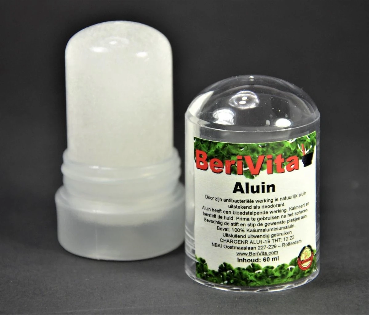 Verder is Aluin een krachtige stof tegen zweten en wordt het daarom gebruik als natuurlijke deodorant. Mooi meegenomen daar is het dat Aluin een antibacteriële werking heeft. Zweet zelf is alleen maar water en wat lichaamszouten, zweet is van zichzelf geurloos. Bacteriën die groeien in het zweet veroorzaken de zweetlucht. De bacterie, die de typische zweetgeur geeft, wordt sterk geremd natuurlijk aluin.