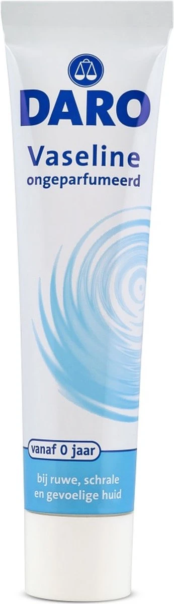 Daro Vaseline is een niet geparfumeerde zalf voor meerdere toepassingen. Daro Vaseline verzorgt niet alleen de droge, ruwe (baby)huid, maar beschermt ook de dunne huid van het gezicht tegen de uitdrogende invloed van kou. Daro Vaseline zit in een handige, hygiënische tube waardoor het gemakkelijk aan te brengen is.