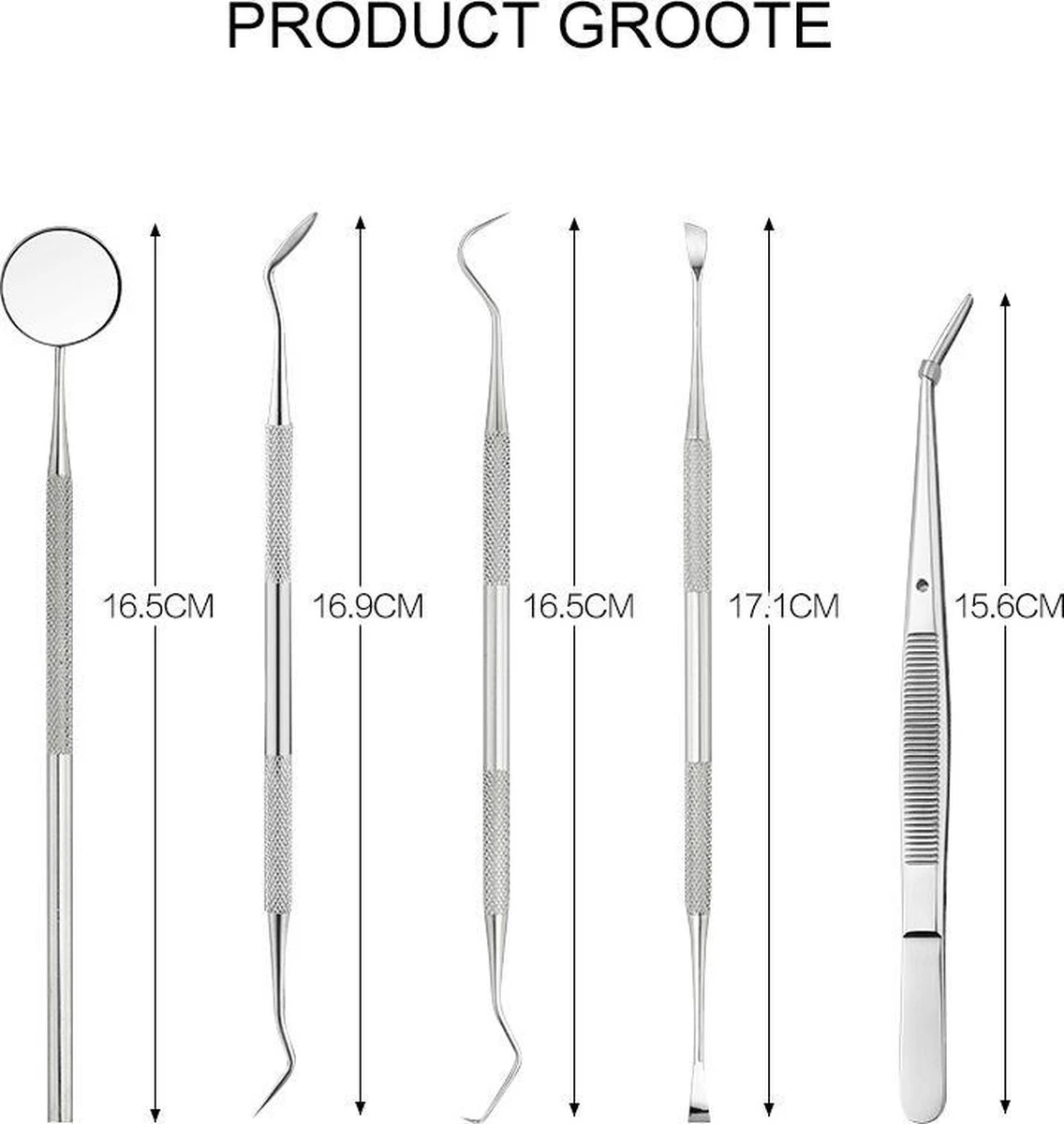 Tandsteen en tandplak verwijderen zijn de meest voorkomende ingrepen als het gaat om een tandartsbezoek. Dit kun je met poetsen en flossen helaas niet weghalen. In deze set zitten o.a. een tandsteen haakje en een tandsteen schraper. Met deze instrumenten haal je het gemakkelijk zelf weg. En dat scheelt je in de kosten bij je eerstvolgende tandartsbezoek.