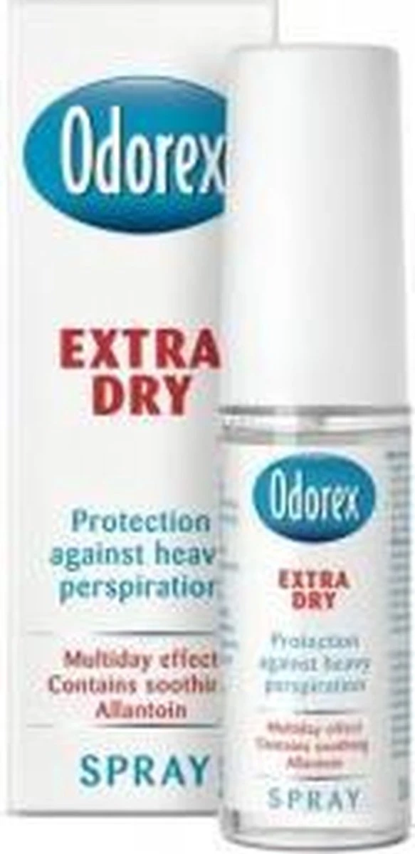 Het onderdrukt op een verantwoorde wijze overmatige transpiratie en voorkomt transpiratiegeur. Door de unieke formule blijft Odorex Extra Dry langer werkzaam dan een reguliere deodorant. De spray heeft een langdurige werking en bevat ook allantoïne, wat de huid verzacht en verzorgt. Bovendien is de Spray parfumvrij.
