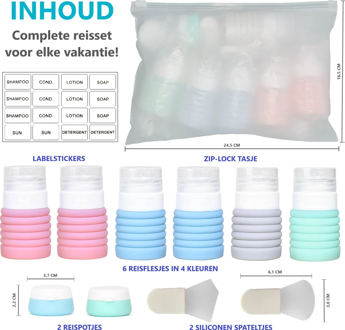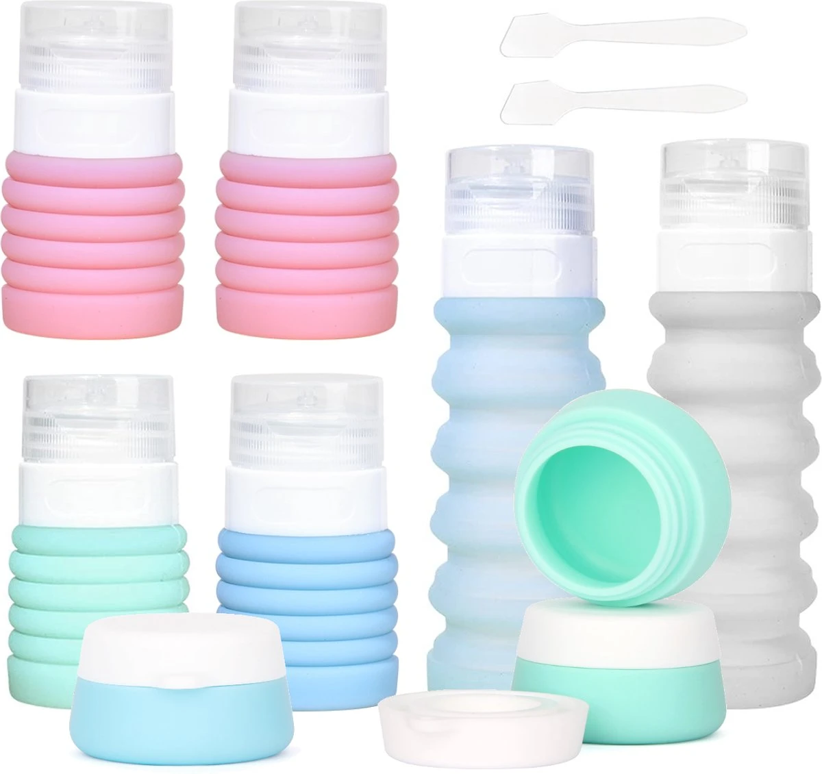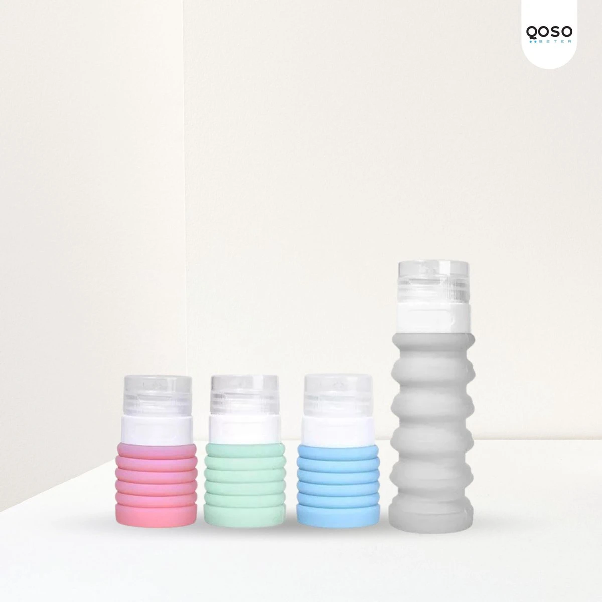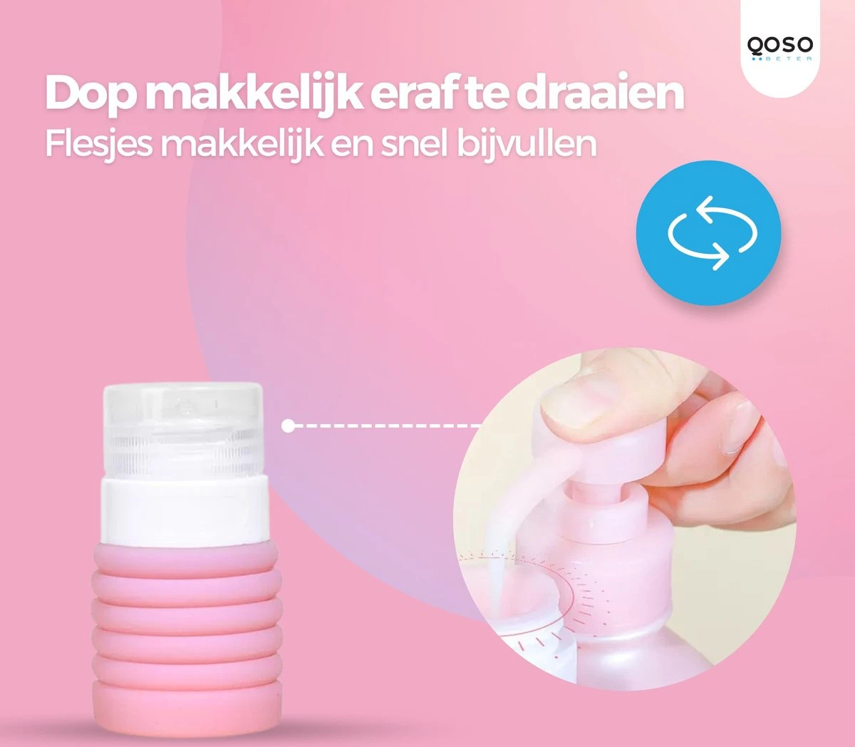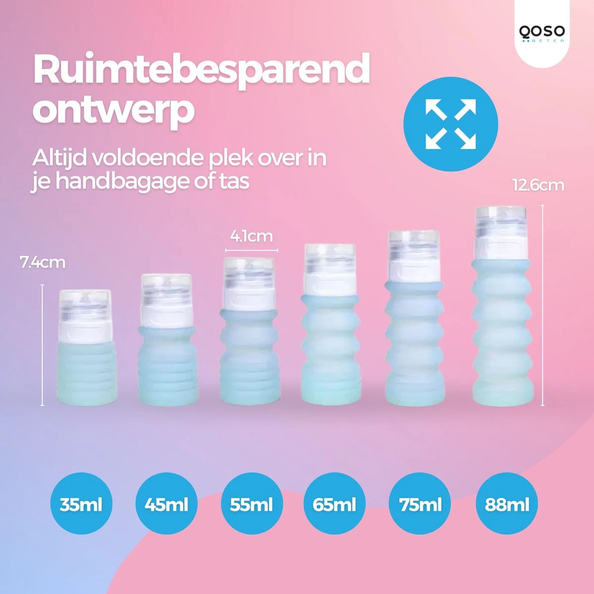 QOSO Reisflesjes Set 8-Delig | Reisflesjes Handbagage Opvouwbaar | Mini Shampoo & Reispotjes Hervulbaar Klein | Reisflesjes 100ml In 4 Kleuren | Navulbare Reisflesjes In Een Reisset