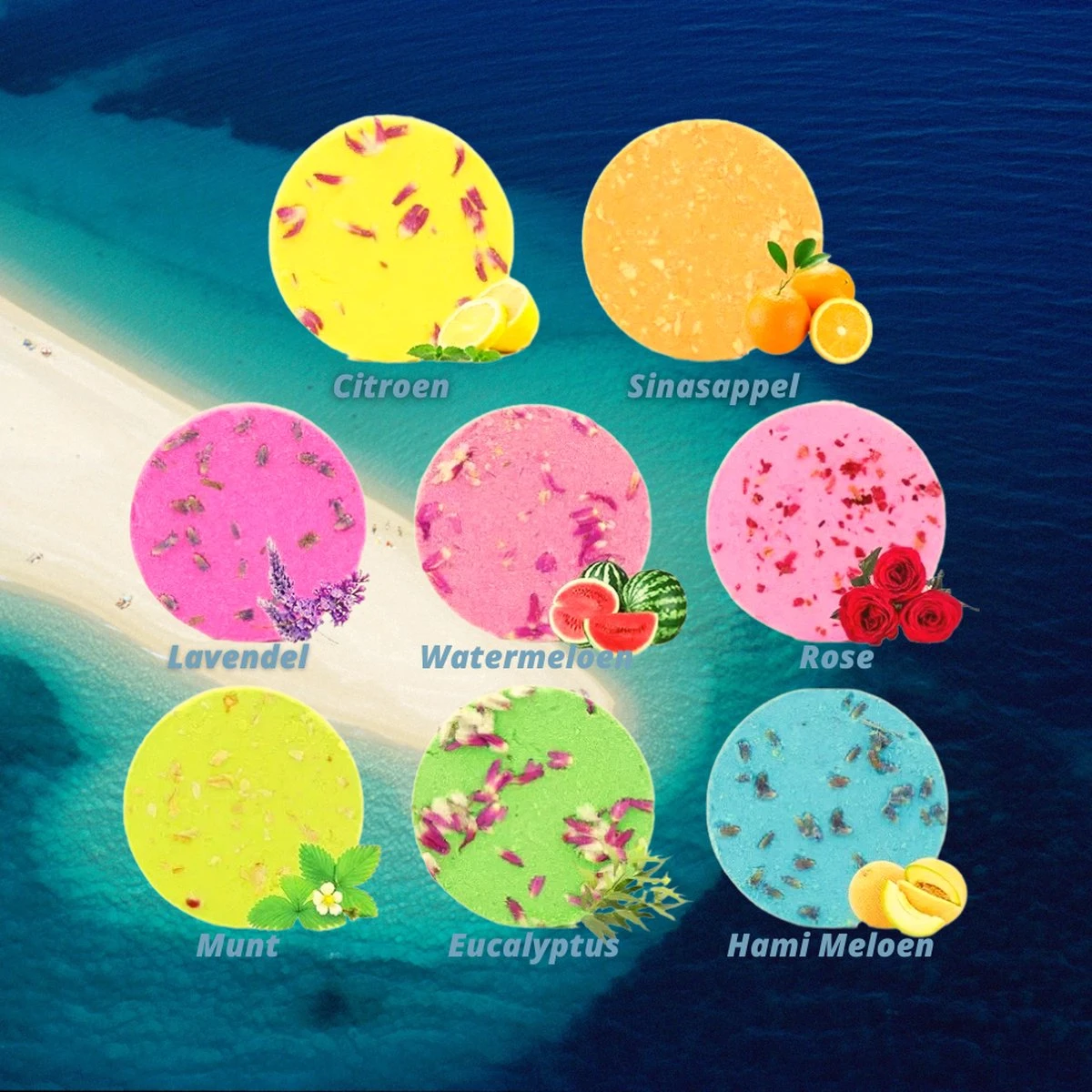 Ben jij ook wel eens moe na een lange dag vol met werk, stress en gehaast? Een dag waarbij jij het liefst even lekker tot rust wil komen en even aan niets wil denken? Een lekkere douche nemen is hiervoor de perfecte gelegenheid, de plek waar jij al je gedachten kunt loslaten en optimaal kunt genieten van een lekker moment voor jezelf, met je partner of met je kinderen. Onze unieke shower steamers voor in de douche, waarbij jij de keuze hebt tussen wél 8 natuurlijke shower steamers met verschillende geuren, biedt de perfecte oplossing om heerlijk te ontspannen en je hoofd leeg te maken onder een lekkere douche met heerlijke aroma’s.