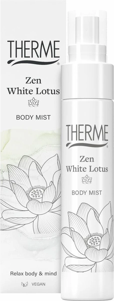 Therme Zen White Lotus Body Mist is een parfumerende spray voor het hele lichaam. De mist heeft een verfrissende en hydraterende werking. Geniet van de serene geur van witte lotus gecombineerd met aromatische jasmijn en subtiele witte musk.
